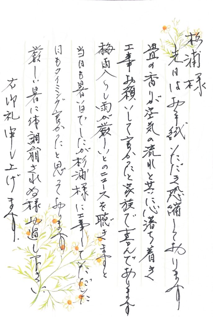 Warning: Undefined variable $fa_family in /home/sugiurahs/sugiura-homeservice.com/public_html/wp-content/plugins/vk-blocks-pro/inc/vk-blocks/font-awesome/font-awesome-config.php on line 63 お客様からのお手紙 | 杉浦畳店(有限会社杉浦ホームサービス)千葉県松戸市の畳店・市川市コンテンツへスキップナビゲーションに移動